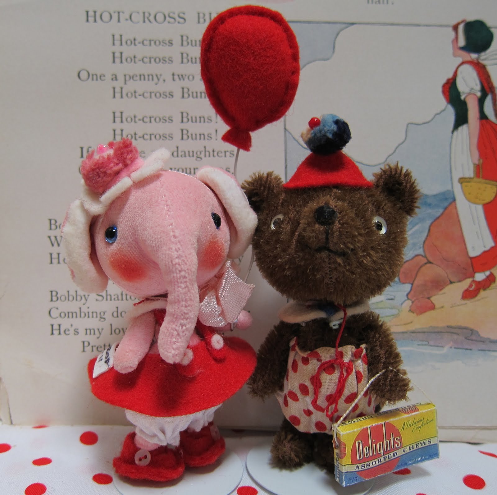 Hello....I have many things on my list of things to do...but there was a doll and toy show here in Atlanta. Now this only happens twice a year...so I felt justified. As per my usual, I accumulated a bag-full of silly little stuff...my favorite kind. It is when I am antiquing that I realize what a weak person I am. Thank goodness my weakness isn't illegal, just impractical. Aren't these fellows charming?