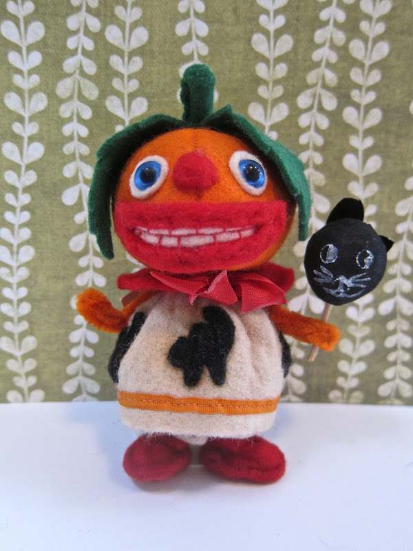 This is "Little Scary Mary"...she is an exception to my happy rule, as all of my toys are smiling...but Scary Mary is a young little witch in training...